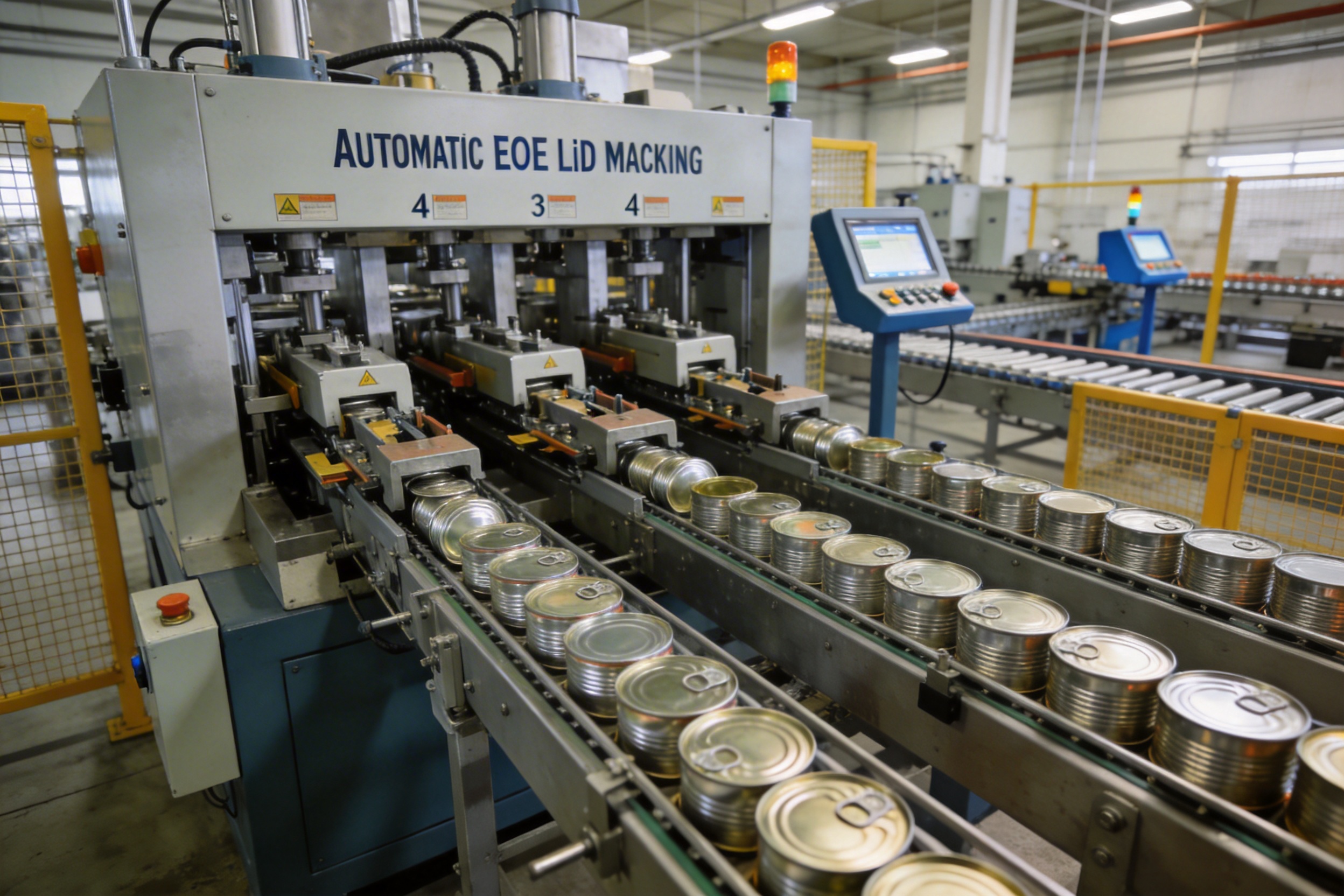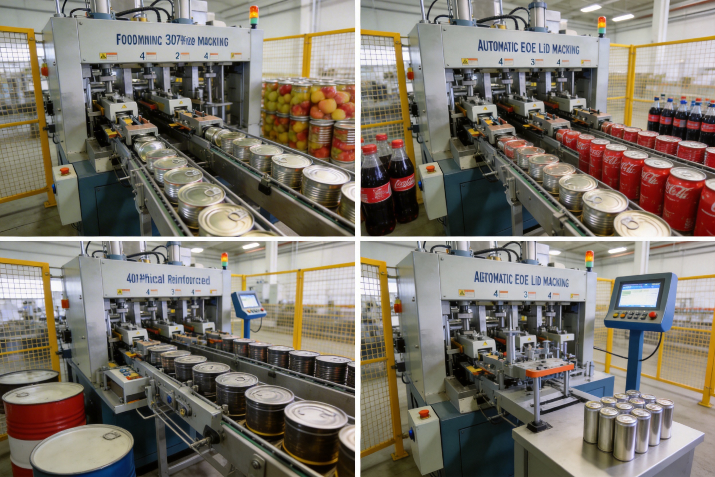 La industria conservera de alimentos es uno de los mayores usuarios de tapas EOE, con aplicaciones que incluyen frutas, verduras, carne, pescado y sopas enlatadas. La capacidad de la máquina para manejar múltiples tamaños de latas (202# a 401#) la hace ideal para esta industria, ya que los fabricantes suelen producir una variedad de productos. Por ejemplo, un fabricante de frutas enlatadas puede utilizar tapas de 307# para latas grandes de duraznos y tapas de 211# para latas pequeñas de trozos de piña. La configuración de 2 carriles de la máquina puede cambiar fácilmente entre estos tamaños, lo que reduce el tiempo de inactividad y aumenta la eficiencia.