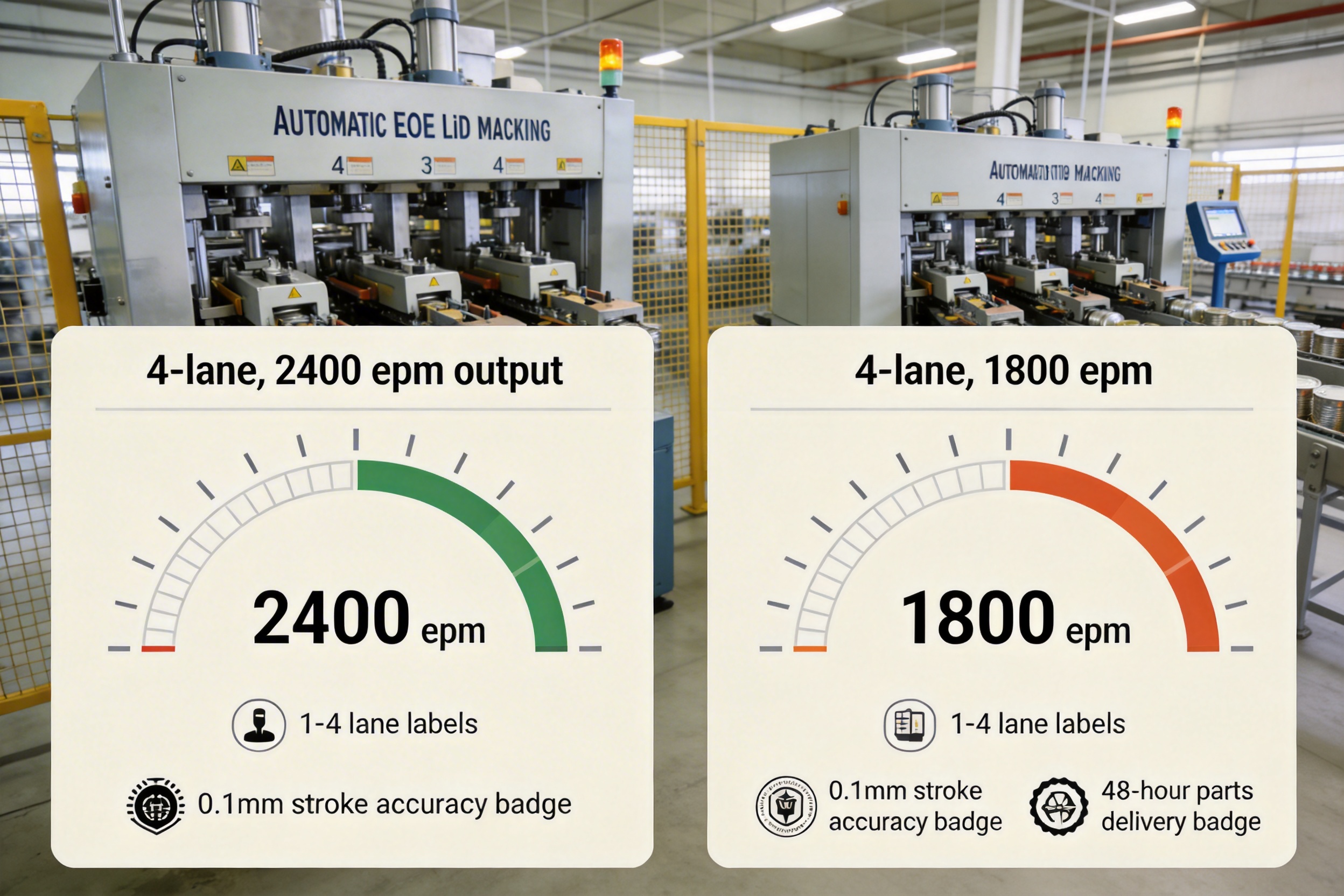 A6: La capacidad de salida máxima de la máquina es de 2400 extremos de fácil apertura por minuto (epm) cuando se configura con 4 carriles. Esto es ideal para fabricantes a gran escala con necesidades de producción de gran volumen.